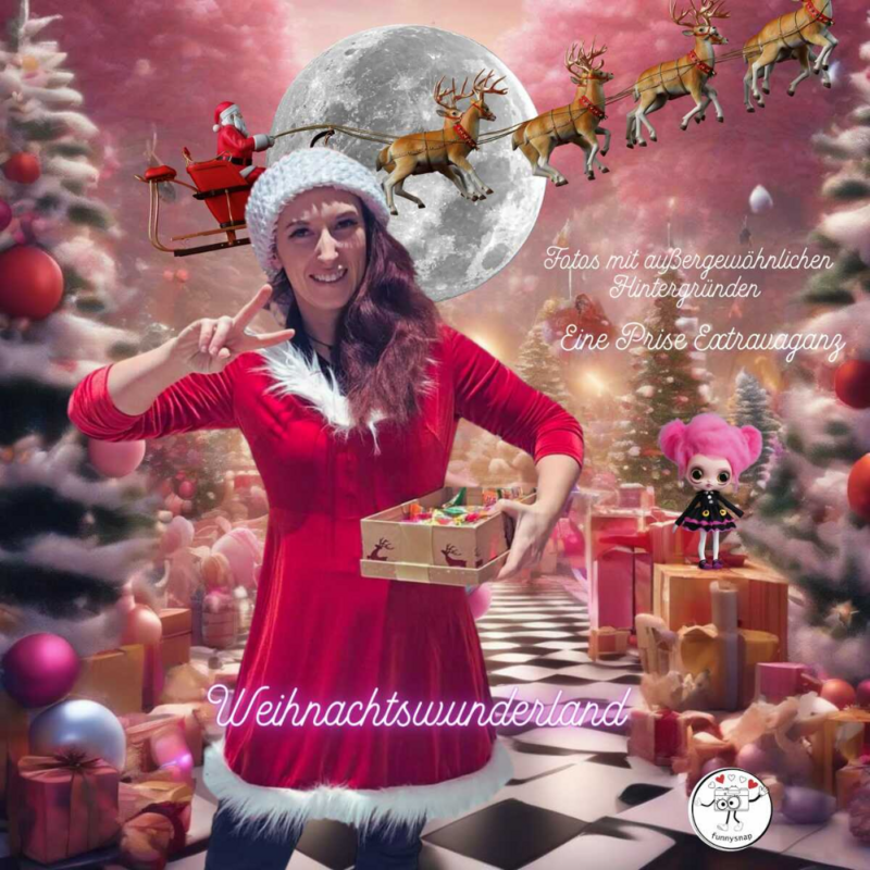 Kreatives knipsen. Die etwas andere Fotografie Hinter Funnysnap steht Vanessa Kranz, die Tochter von Carmen Kranz. Sie kreiert und entwickelt außergewöhnliche Leinwände der Fotografie. Die Fotos wirken sehr lebendig durch die vielen Requisiten zum verkleiden wird es ein Spaß für die ganze Familie. Eine Funnysnap Fotoaktion ist ein Hit für jeden Tag. Fotos können auch auf Stoff / Holz / Caps usw ausgedruckt werden. Grade zu Weihnachten ein tolles Geschenk! Ihre Fotoaktionen - Tierische Weihnachten / Wir machen auch zum Engel sorgten für tolle Geschenke die letzten Jahre. Vanessa (Funnysnap) + Carmen (Kinderspielzauber) Sehr wichtig ist uns der sinnvolle Einsatz der Bastelsets. Deshalb entwickeln wir oft eigene Spielideen z.B. Halloweenzeitung / Hasi Hansi / Weihnachtskartenspiel usw Warum wir gebucht werden? Weil man es fühlen kann was es heißt Freude, Kunst und ein Lächeln den Kunden zu schenken. Es gibt ein unvergessliches Glücksgefühl. Schnell werden auch Sie merken, das Kinderspielzauber/Funnysnap eine Mischung ist die Einfach nur verzaubert.