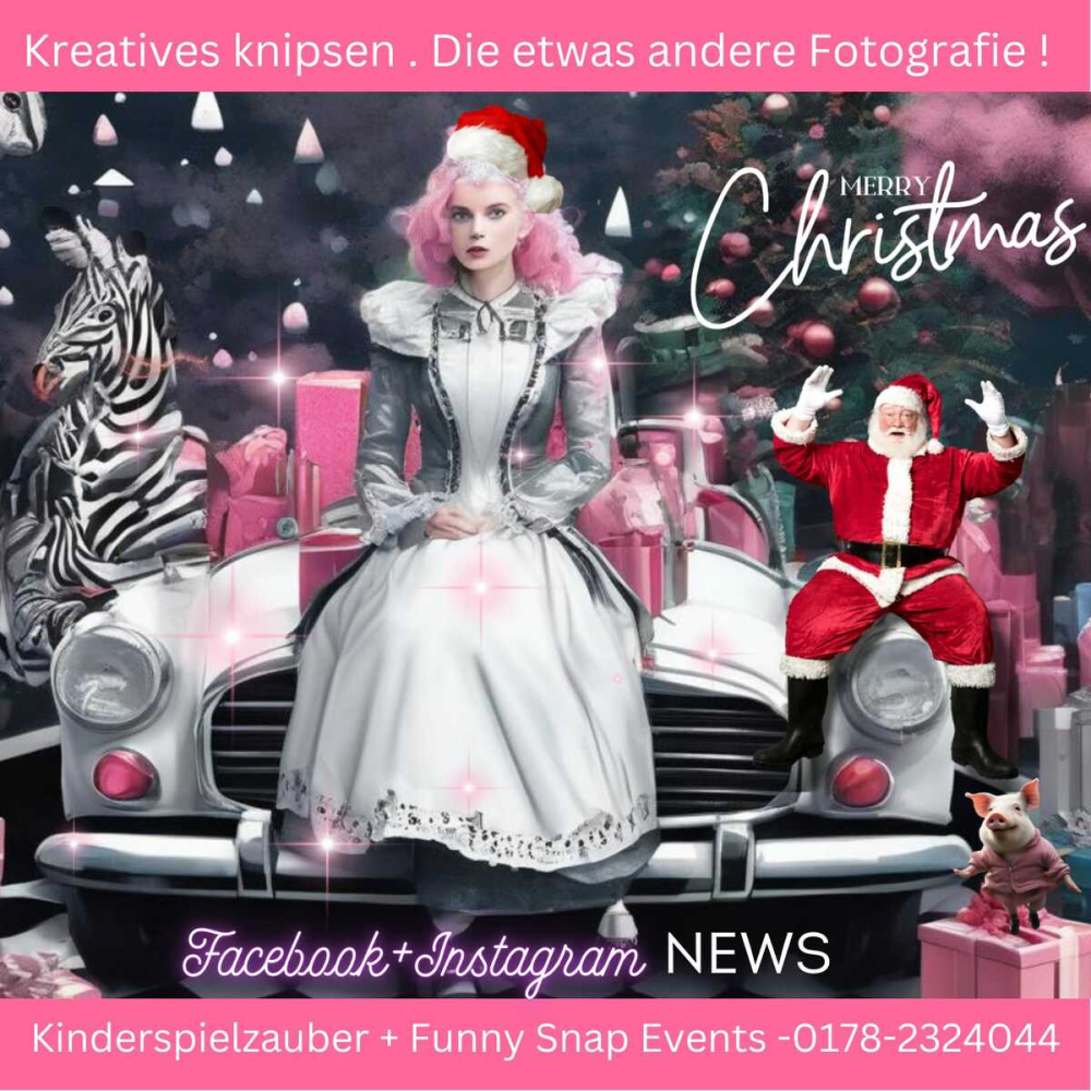 Kreatives knipsen. Die etwas andere Fotografie Hinter Funnysnap steht Vanessa Kranz, die Tochter von Carmen Kranz. Sie kreiert und entwickelt außergewöhnliche Leinwände der Fotografie. Die Fotos wirken sehr lebendig durch die vielen Requisiten zum verkleiden wird es ein Spaß für die ganze Familie. Eine Funnysnap Fotoaktion ist ein Hit für jeden Tag. Fotos können auch auf Stoff / Holz / Caps usw ausgedruckt werden. Grade zu Weihnachten ein tolles Geschenk! Ihre Fotoaktionen - Tierische Weihnachten / Wir machen auch zum Engel sorgten für tolle Geschenke die letzten Jahre. Vanessa (Funnysnap) + Carmen (Kinderspielzauber) Sehr wichtig ist uns der sinnvolle Einsatz der Bastelsets. Deshalb entwickeln wir oft eigene Spielideen z.B. Halloweenzeitung / Hasi Hansi / Weihnachtskartenspiel usw Warum wir gebucht werden? Weil man es fühlen kann was es heißt Freude, Kunst und ein Lächeln den Kunden zu schenken. Es gibt ein unvergessliches Glücksgefühl. Schnell werden auch Sie merken, das Kinderspielzauber/Funnysnap eine Mischung ist die Einfach nur verzaubert.