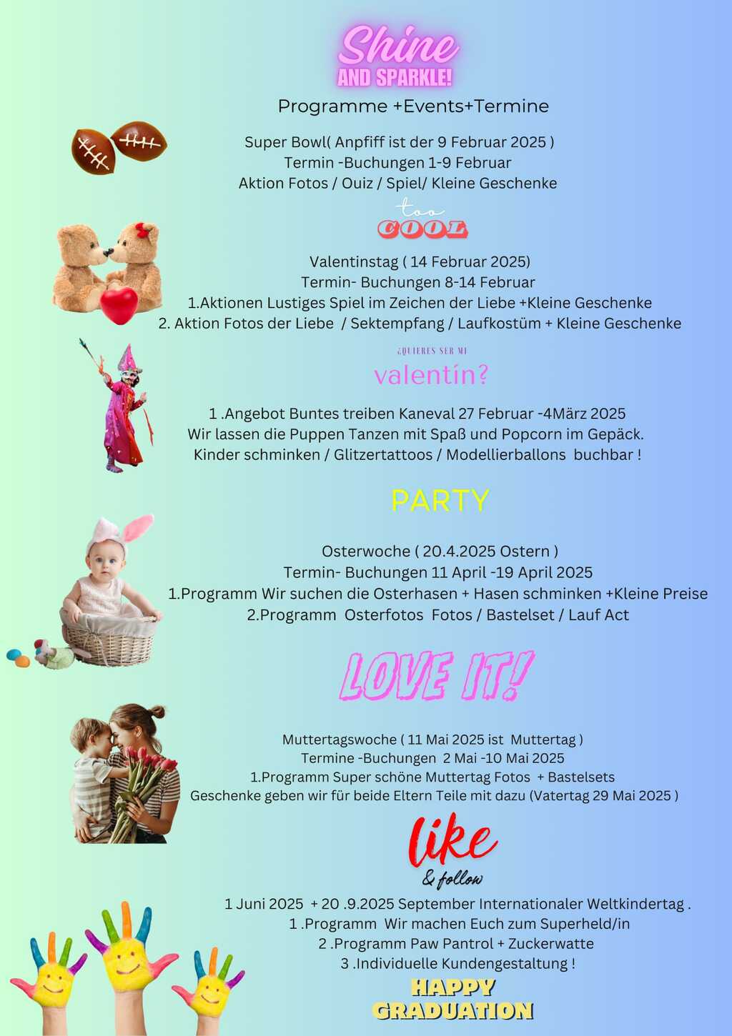 Sie haben ein Thema und Motto für Ihr Event in Kopf? Ihnen fehlen die Ideen? Das ist kein Problem wir 2 helfen Ihnen gerne in der Umsetzung. Mit Fotos Spiel + Spaß. Nach Ihren Wünschen entwerfen und planen wir Ihr Event. Natürlich auch mit unseren tollen Team stehen wir Ihnen gerne zur Seite. So bleibt Ihr Tag vom Event ein unvergessliches Erlebnis für die ganze Familie. Holen Sie sich gerne unser Angebot ein!
